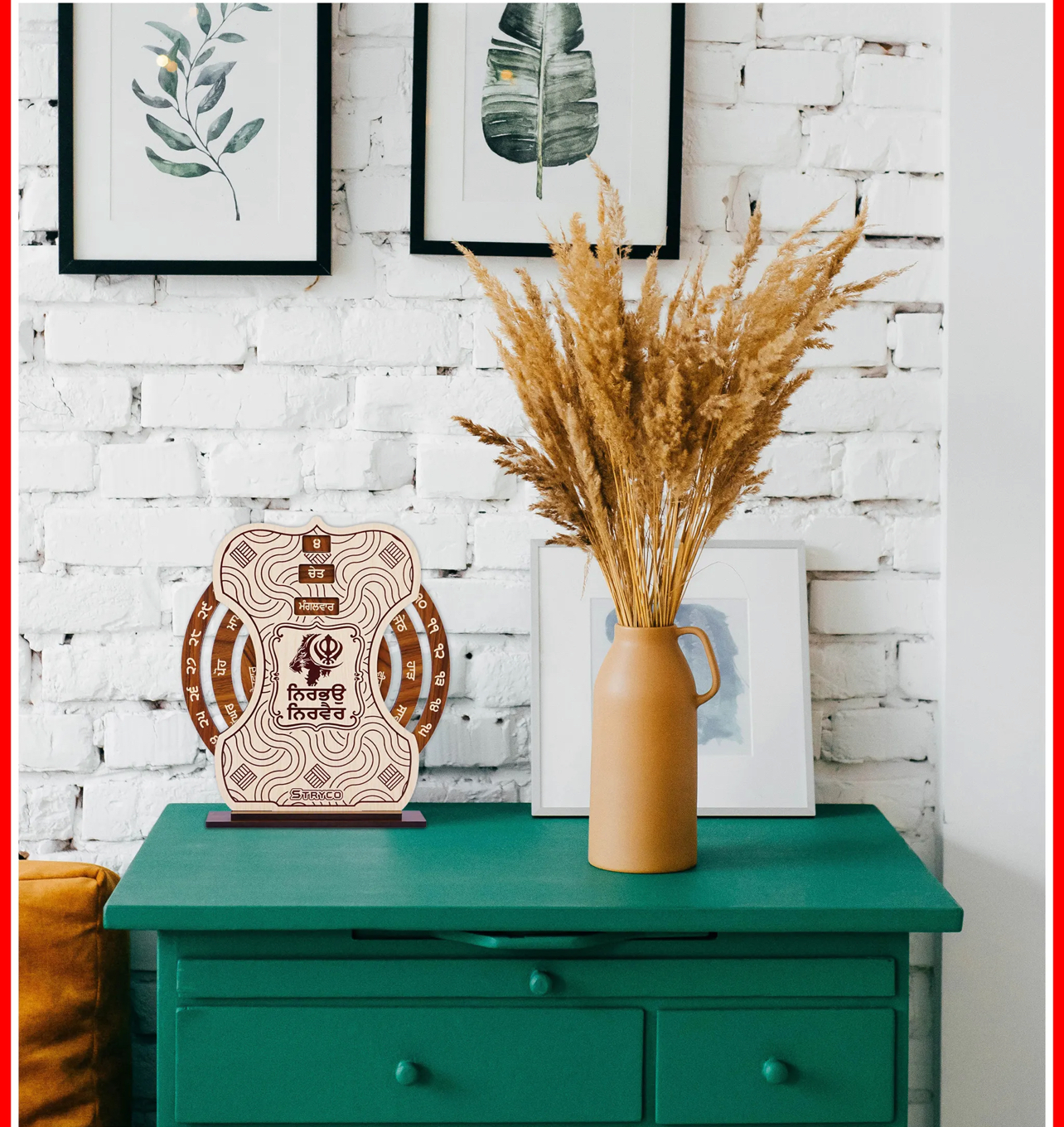 Beechwood Nirbhau Nirvair Perpetual Wooden Punjabi Calendar, Desk organizer for office and home,9×8 Inches