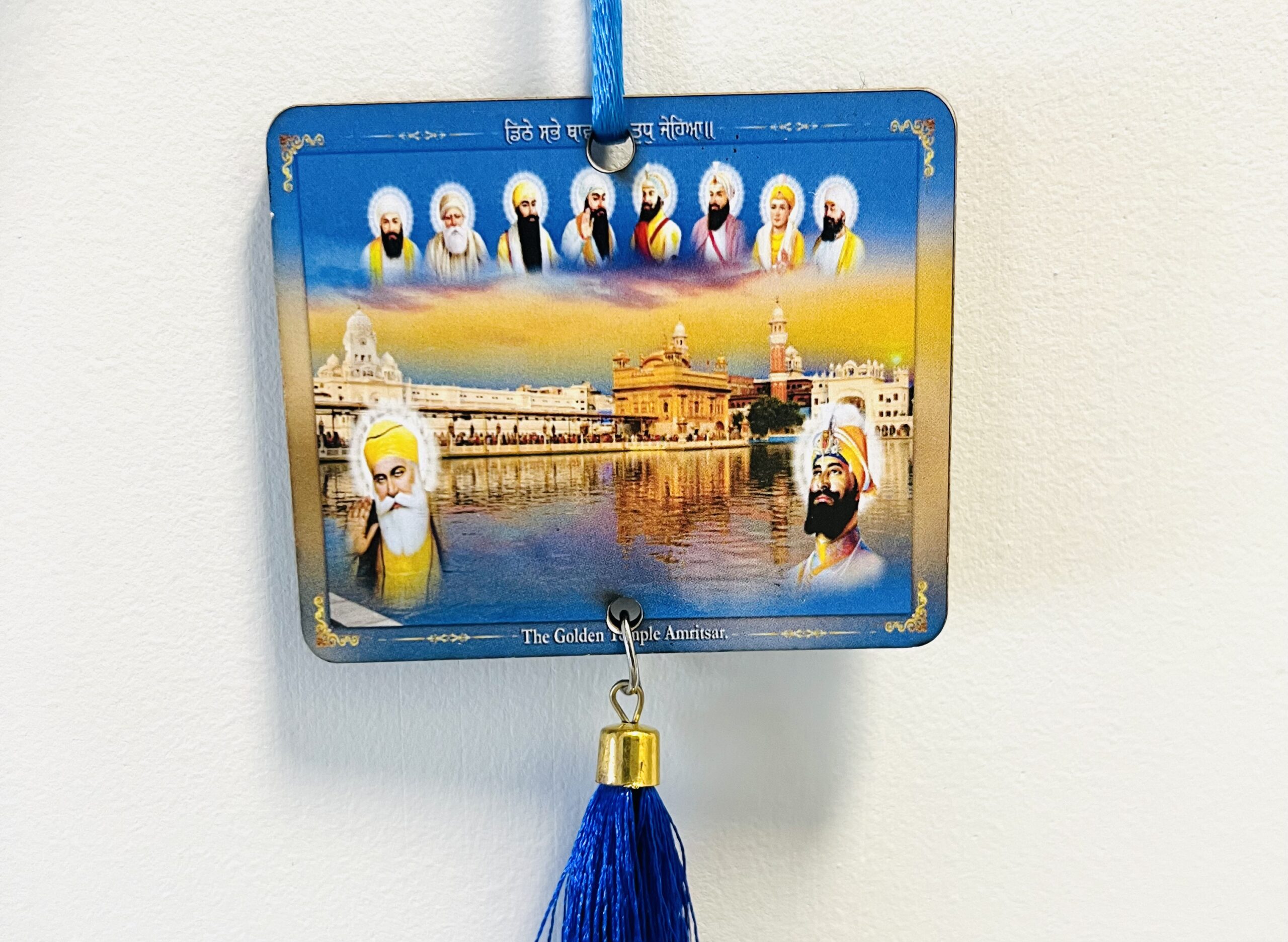 Golden Temple & Sikh Gurus Car Hanging with Tassel
