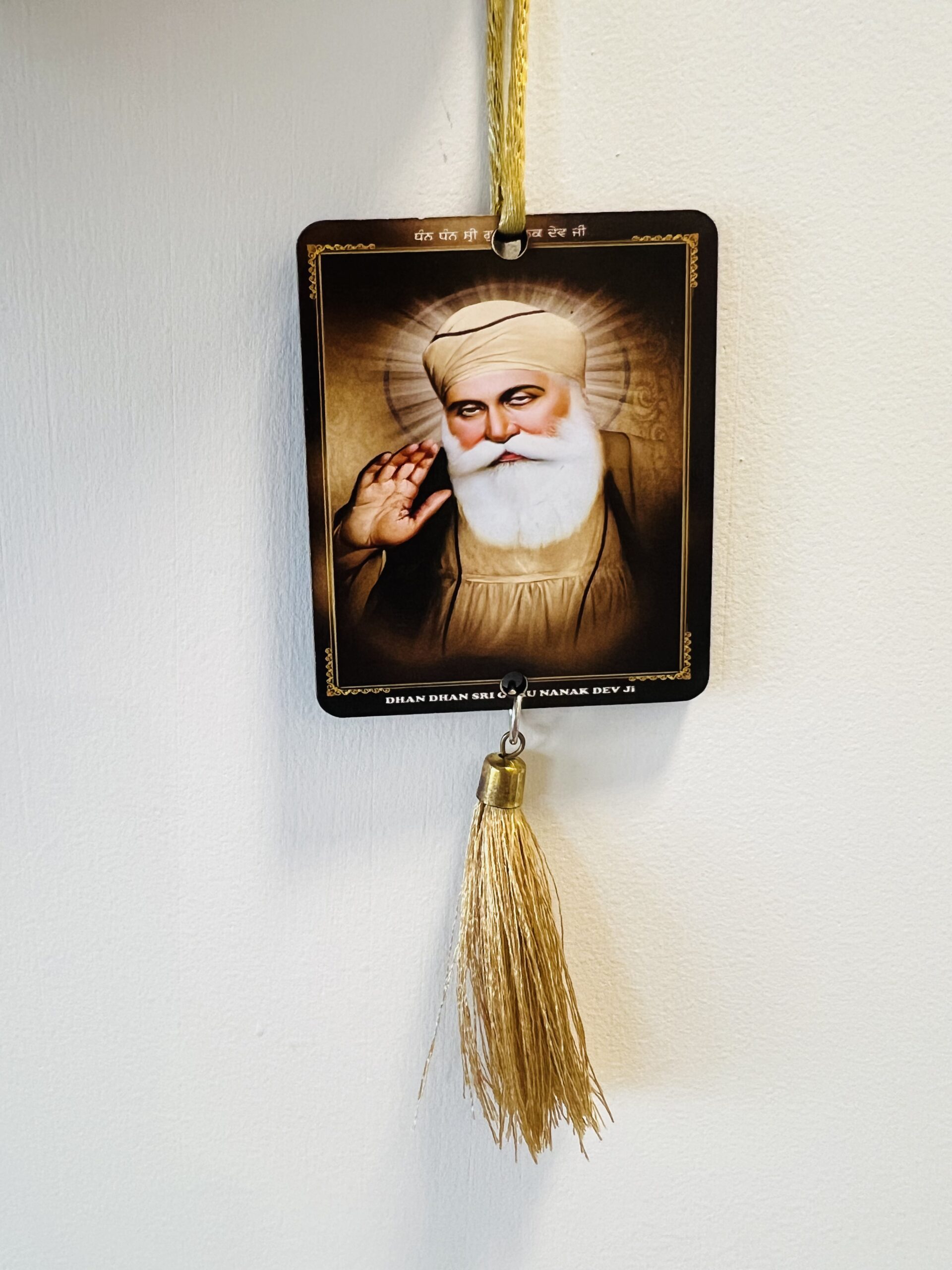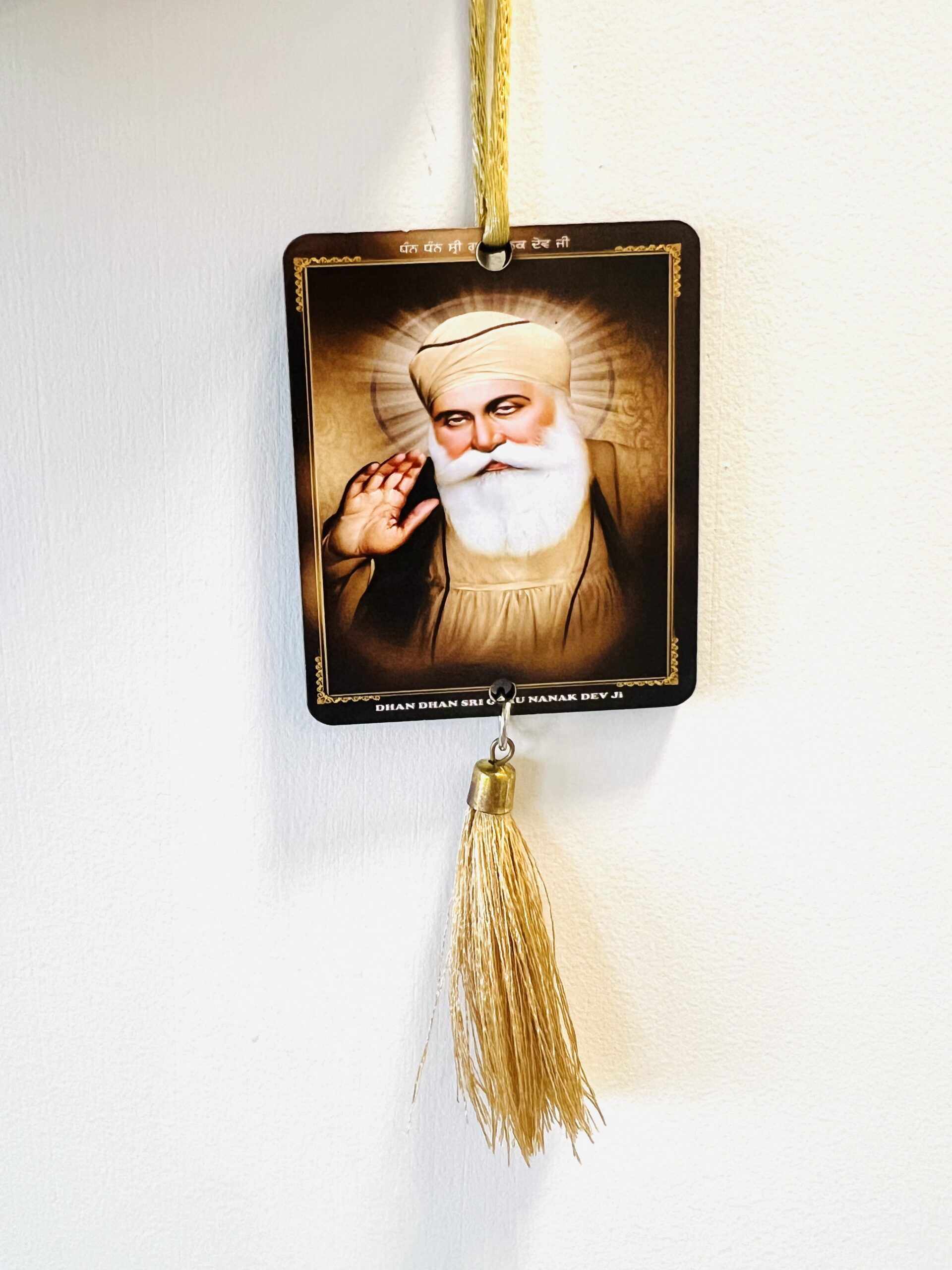 Guru Nanak Dev Ji Car Hanging with Golden Tassel