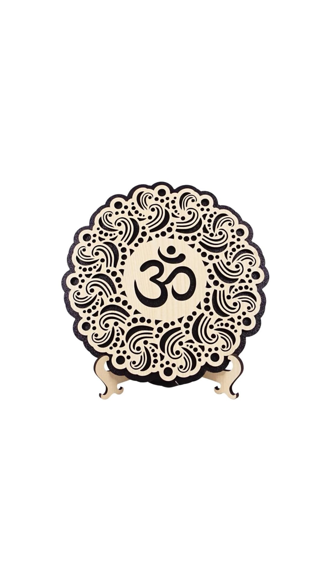 Beautifully crafted wooden table top item designed with precision, and an engraved image of om—perfect for your home, temple or office to bring strength, faith, and motivation every day.